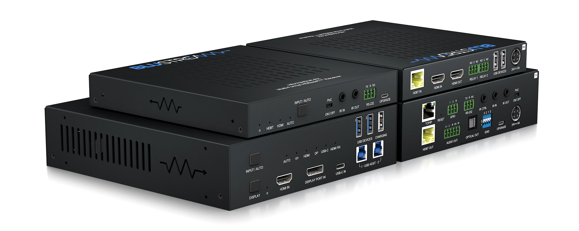 • Features 1 x HDMI, 1 x USB-C and 1 x DisplayPort™ input on the HDBaseT™ Transmitter with manual or auto source selection